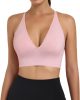 - Features a stylish deep V-neck that enhances your natural curves for a look that’s both confident and alluring. The triangle cup with removable padding offers a minimalist, contour-hugging fit, providing just the right amount of coverage and support for yoga and everyday wear